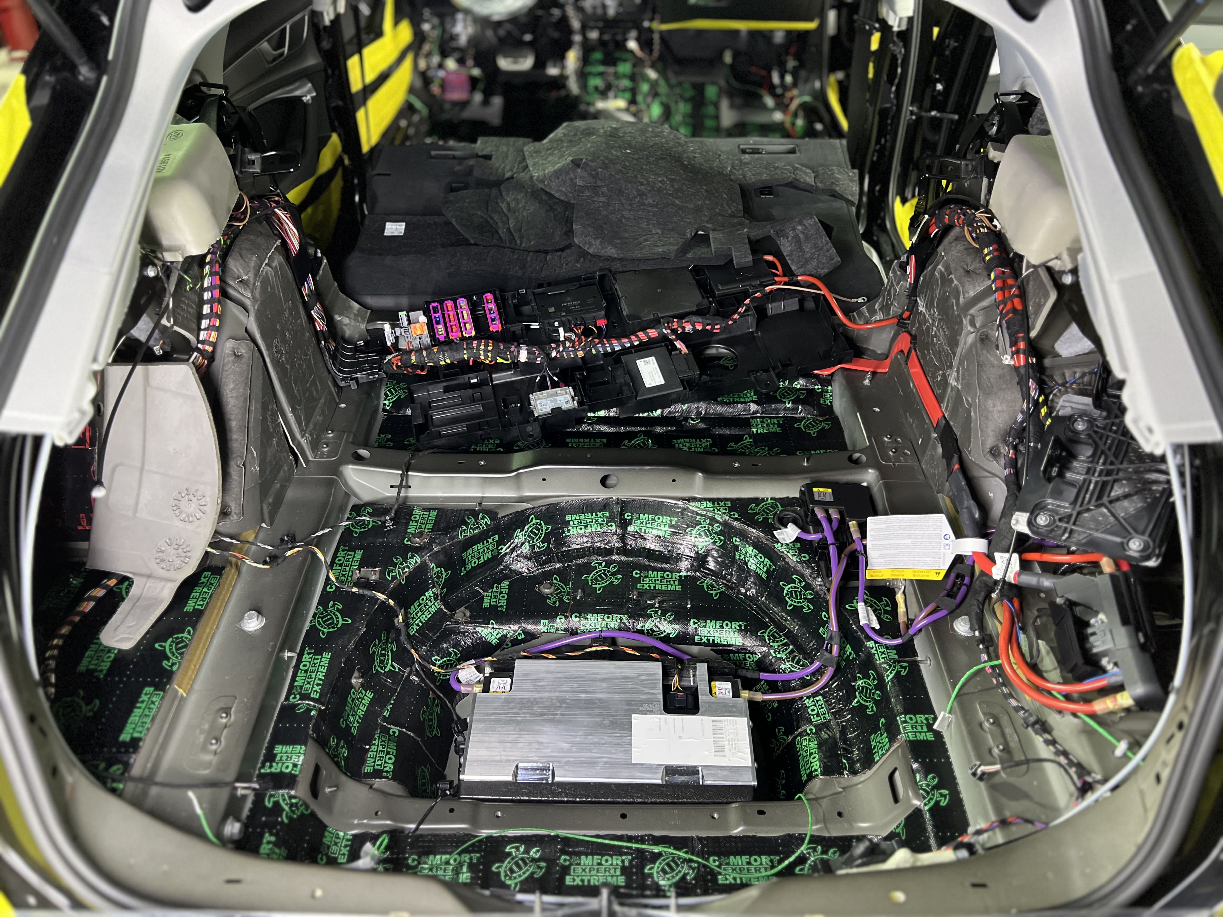 Багажник и днище – ключевые источники шума от колес, подвески и дорожного покрытия. Мы использовали многослойную изоляцию для устранения вибраций и гула.