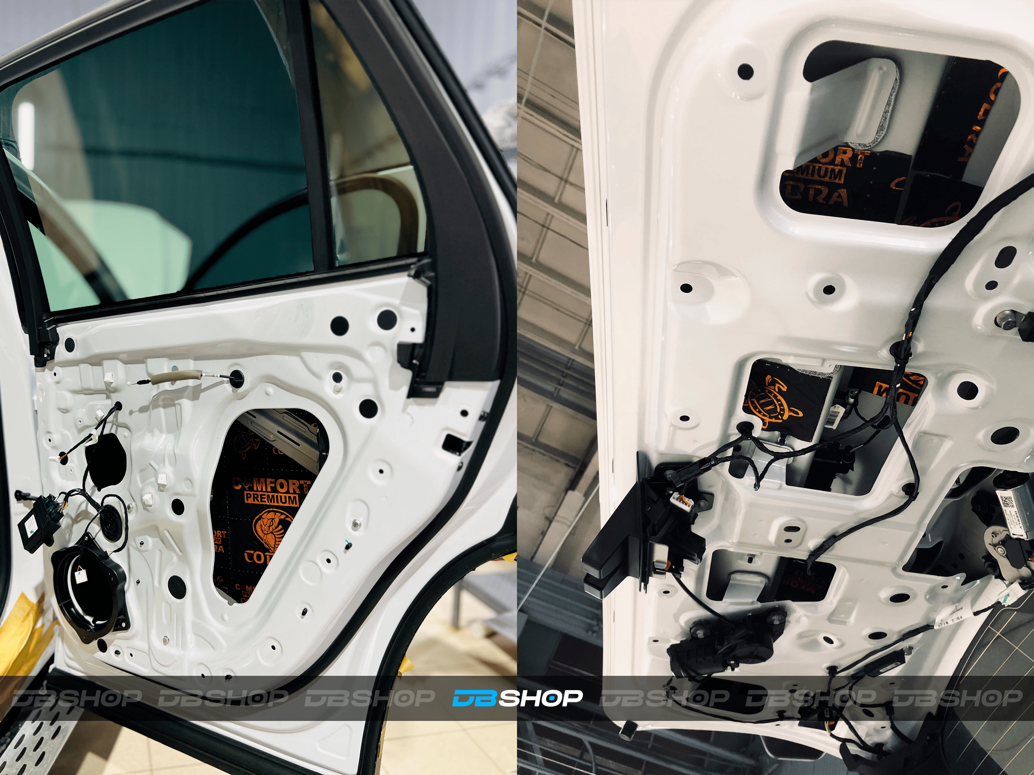 Финальным слоем на каркасе двери и двери багажника нанесли виброизоляцию Comfort Mat Premium Cobra и шумопоглощающие волны Comfort Mat Тишина Volna для более качественного поглощения сторонних звуков.