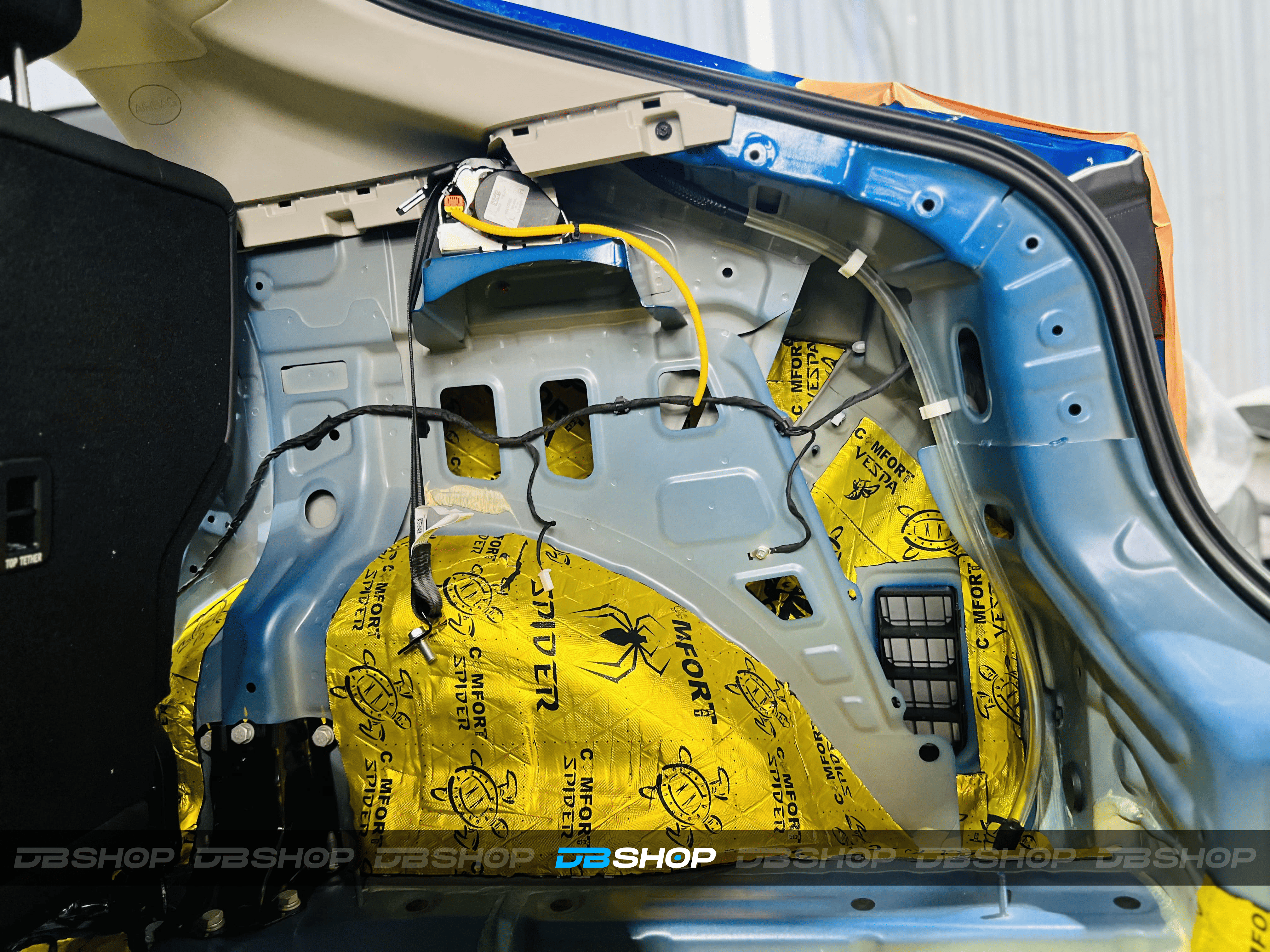Первым слоем на дно салона и багажник нанесли виброизоляцию Comfort Mat Spider. Универсальный вибродемпфирующий материал толщиной 3,5 мм с повышенной адгезией к металлу.