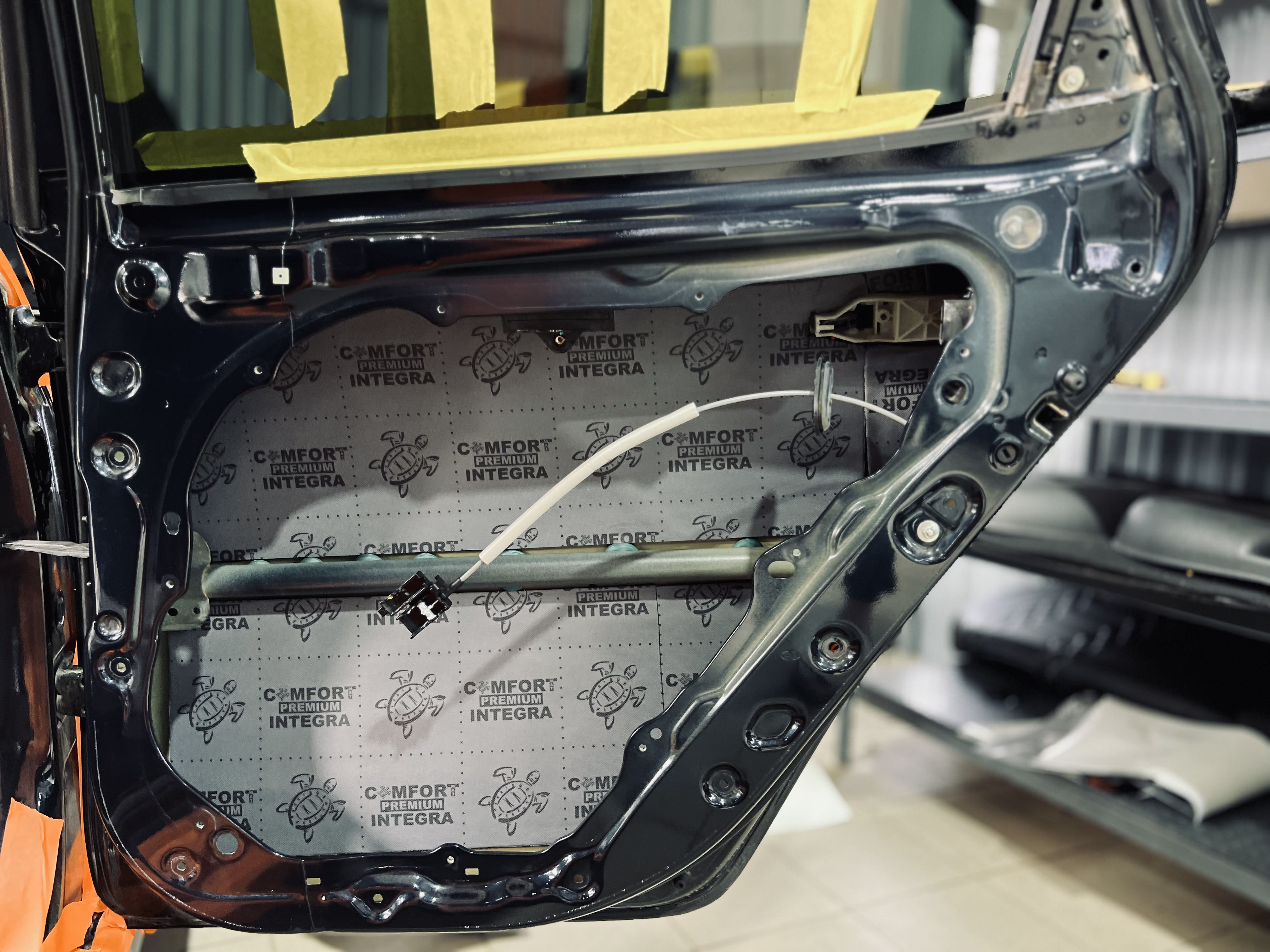 Вторым слоем на двери уложили шумоизоляцию Comfort Mat Integra, поглощающую внешние шумы и добавляющую теплоизоляцию.