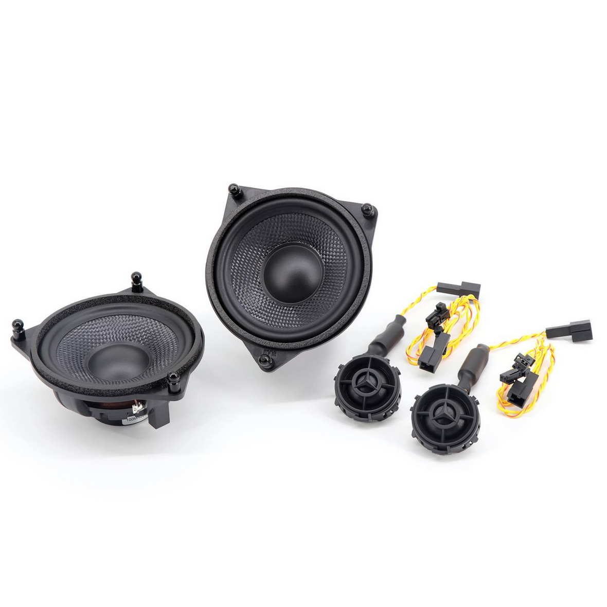 Двухполосная автомобильная акустическая система компонентного типа размером 4 дюйма и предельной мощностью 80 Вт. Создана для использования вместо штатных динамиков авто марки Мерседес и Тесла, где установочные места отличаются нестандартным способом фиксации. Поставляется с инновационным жестким карбоновым диффузором, динамиками высокочастотного диапазона с тканевыми куполами. Производительные магниты из неодима способствуют уменьшению монтажной глубины.