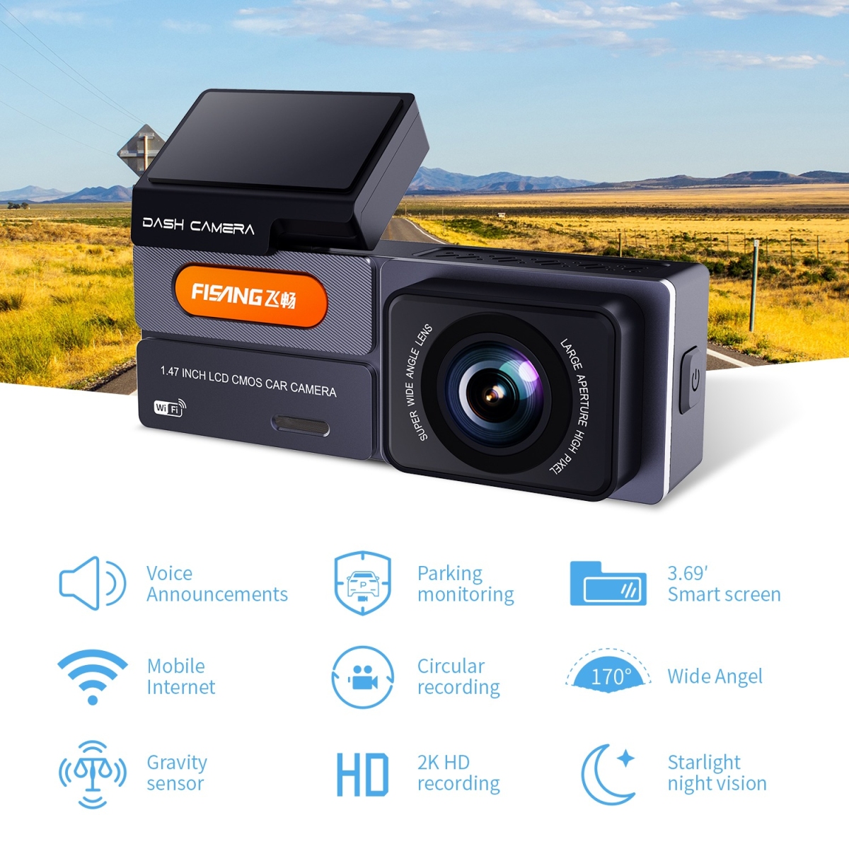 Видеорегистратор Fisang K01 с камерой заднего вида